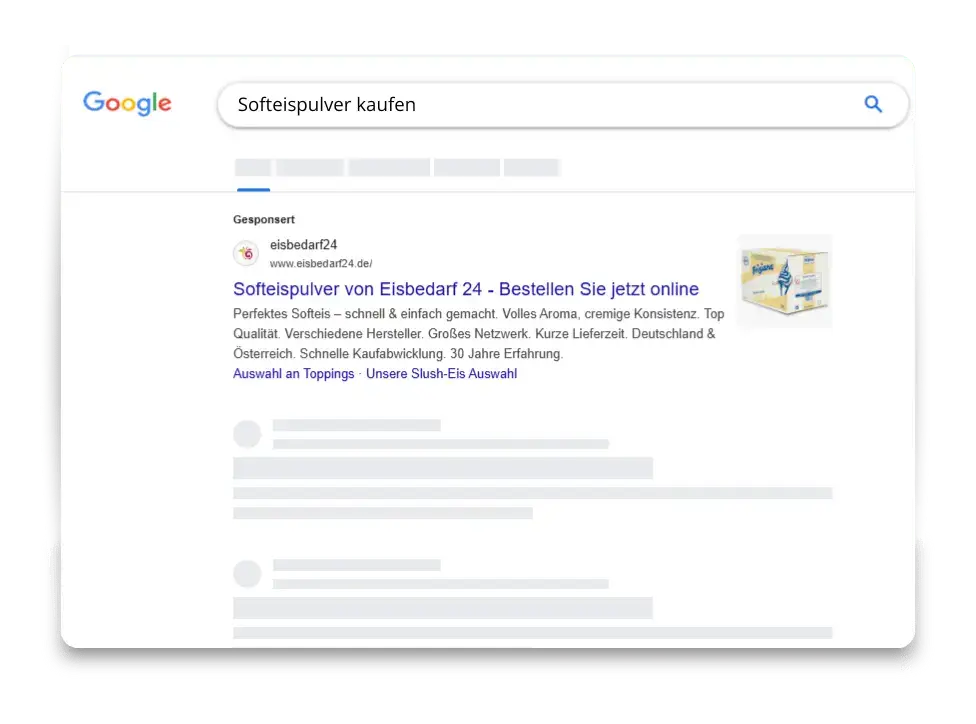 Eisbedarf24 agiert im B2B-Segment, wo der Wettbewerb um Keywords und Zielgruppen stark ist. Gleichzeitig stand nur ein begrenztes Werbebudget zur Verfügung. Die Herausforderung bestand darin, trotz dieser Einschränkungen eine hohe Effizienz zu erreichen und den Branchendurchschnitt im ROAS (300 % – 400 %) deutlich zu übertreffen.