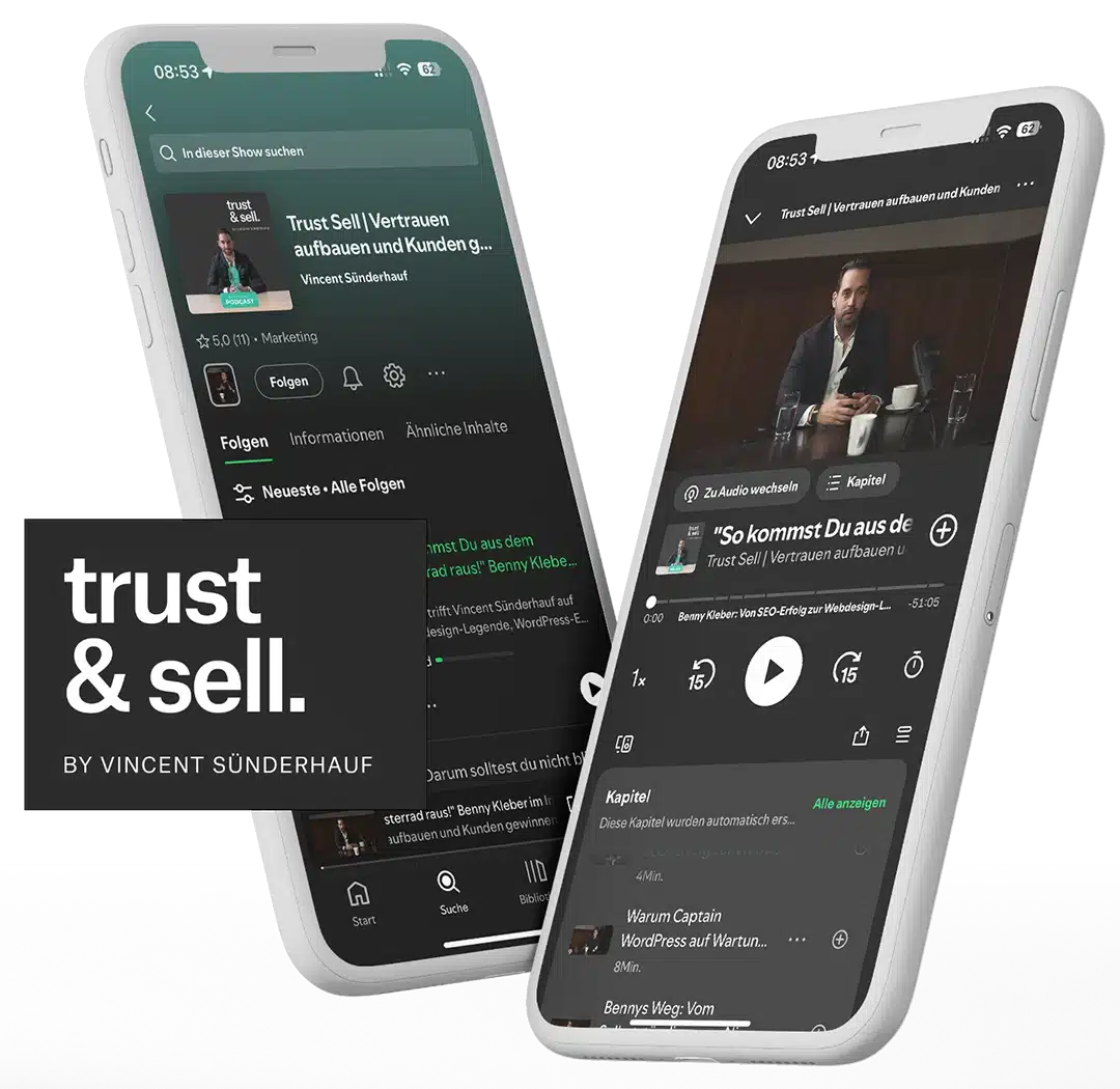 Sichtbarkeit ist das eine. Vertrauen das andere. Wer online gefunden wird, aber nicht überzeugt, verliert den Kunden noch vor dem ersten Gespräch. Genau diese Lücke schließt Trust & Sell. Die Folgen wechseln zwischen Solofolgen, in denen Vincent konkretes Praxiswissen teilt, und Interviews mit Gründern, Agenturchefs und Marketingverantwortlichen, die aus ihrer eigenen Erfahrung berichten.