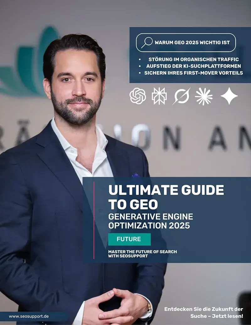 Erhalte mit unserem Whitepaper „Ultimate Guide to GEO“ einen tiefen Einblick in die Zukunft der Suchmaschinenoptimierung. Erfahre, wie du deine Marke in KI-basierten Suchsystemen wie ChatGPT, Gemini, Perplexity & Co. sichtbar machst.